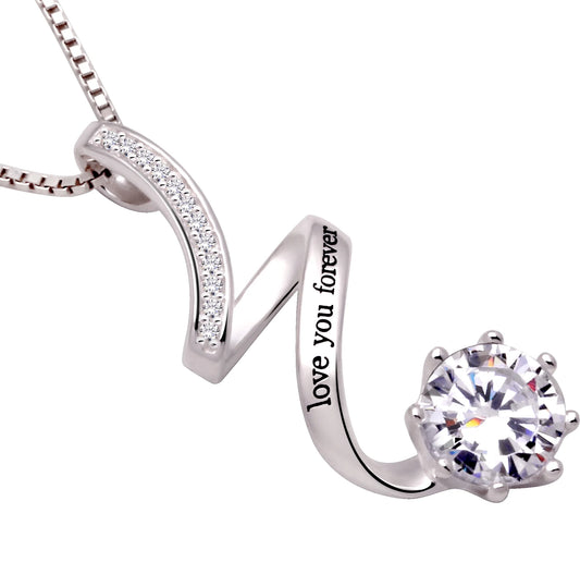 Jewelry Sterling Silver "Love You Forever" Cubic Zirconia Pendant Necklace