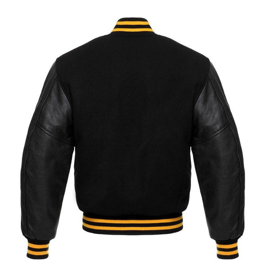 Varsity Bomber Letterman Black Wool & Real Cowhide Leather Sleeves Jackets